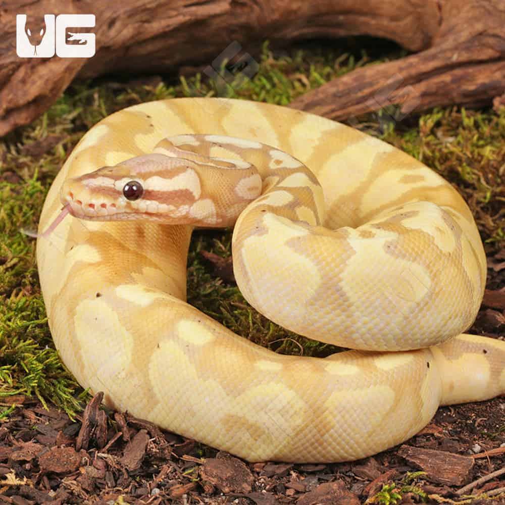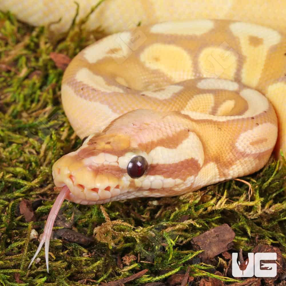 WE HAVE A YEARLING FEMALE BANANA PASTEL YELLOWBELLY HET PIED BALL PYTHON FOR SALE. HERE ARE SOME HIGHLIGHTS: