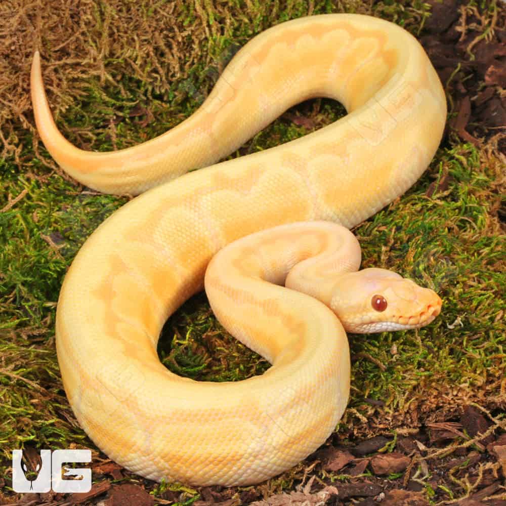 WE HAVE A YEARLING MALE ALBINO LEMONBLAST BALL PYTHON FOR SALE. HERE ARE SOME HIGHLIGHTS: